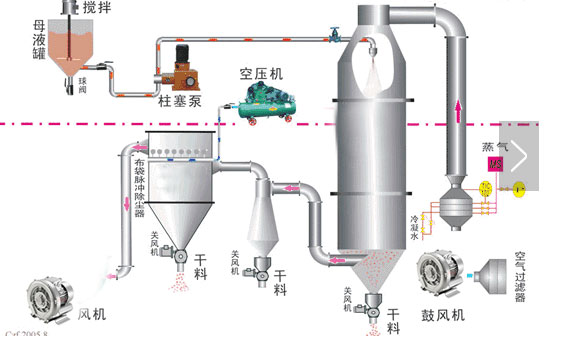 當高壓風機以這樣的形式運用于烘干設備中的時候,不僅兼顧了負壓操作的優點,又避免了由于大的負壓操作,使空氣漏入系統中,選成干燥效率降低的缺點,同時,微負壓操作又可保證粉塵回收裝置具有最高的回收率。