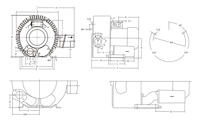 德冠品牌高壓風機尺寸表: